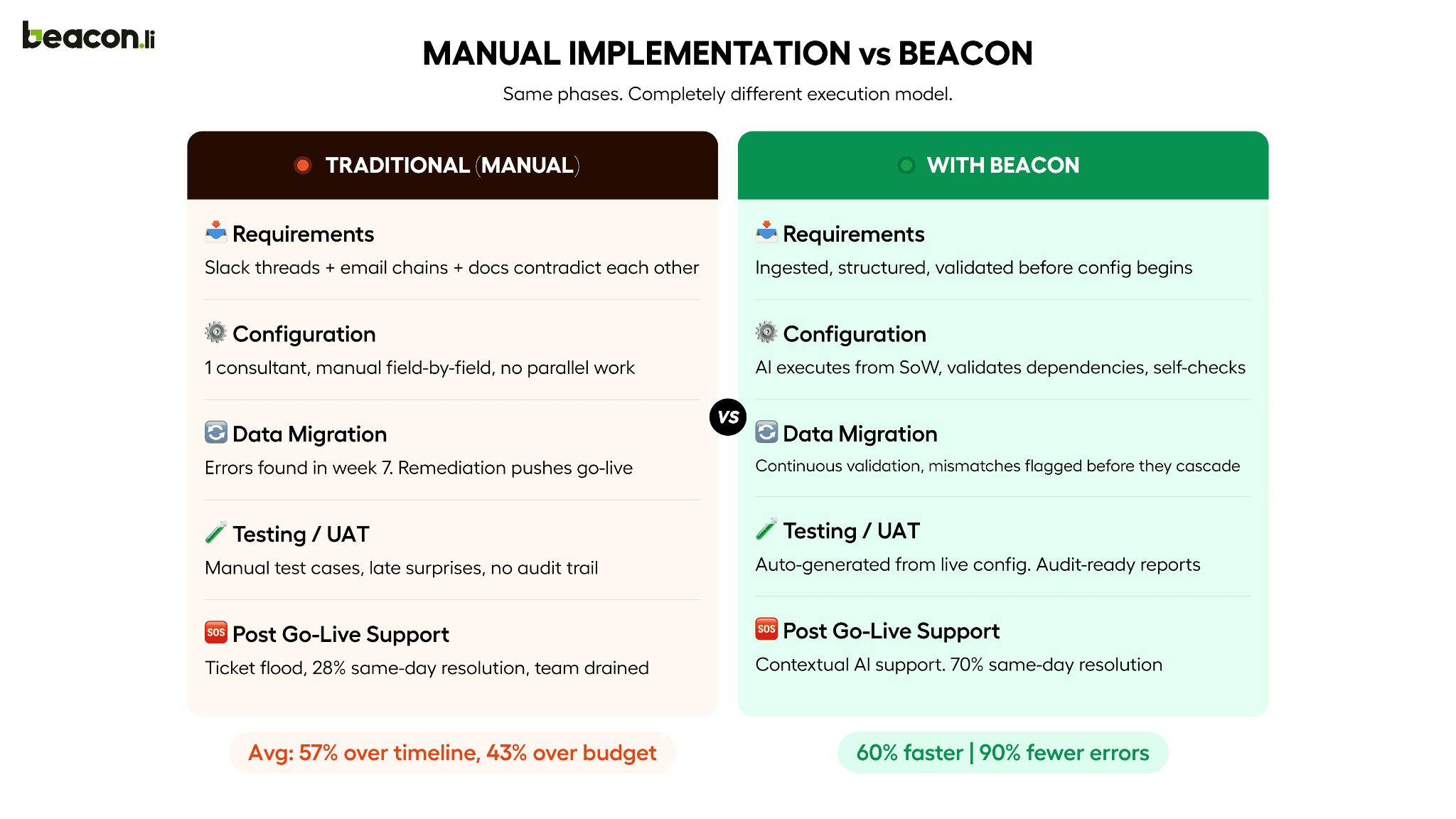 What closes it is a platform that executes across the full implementation lifecycle, learns from every deployment, and surfaces that learning into each subsequent project. That's not a category that previously existed in enterprise SaaS. Beacon.li is building it.