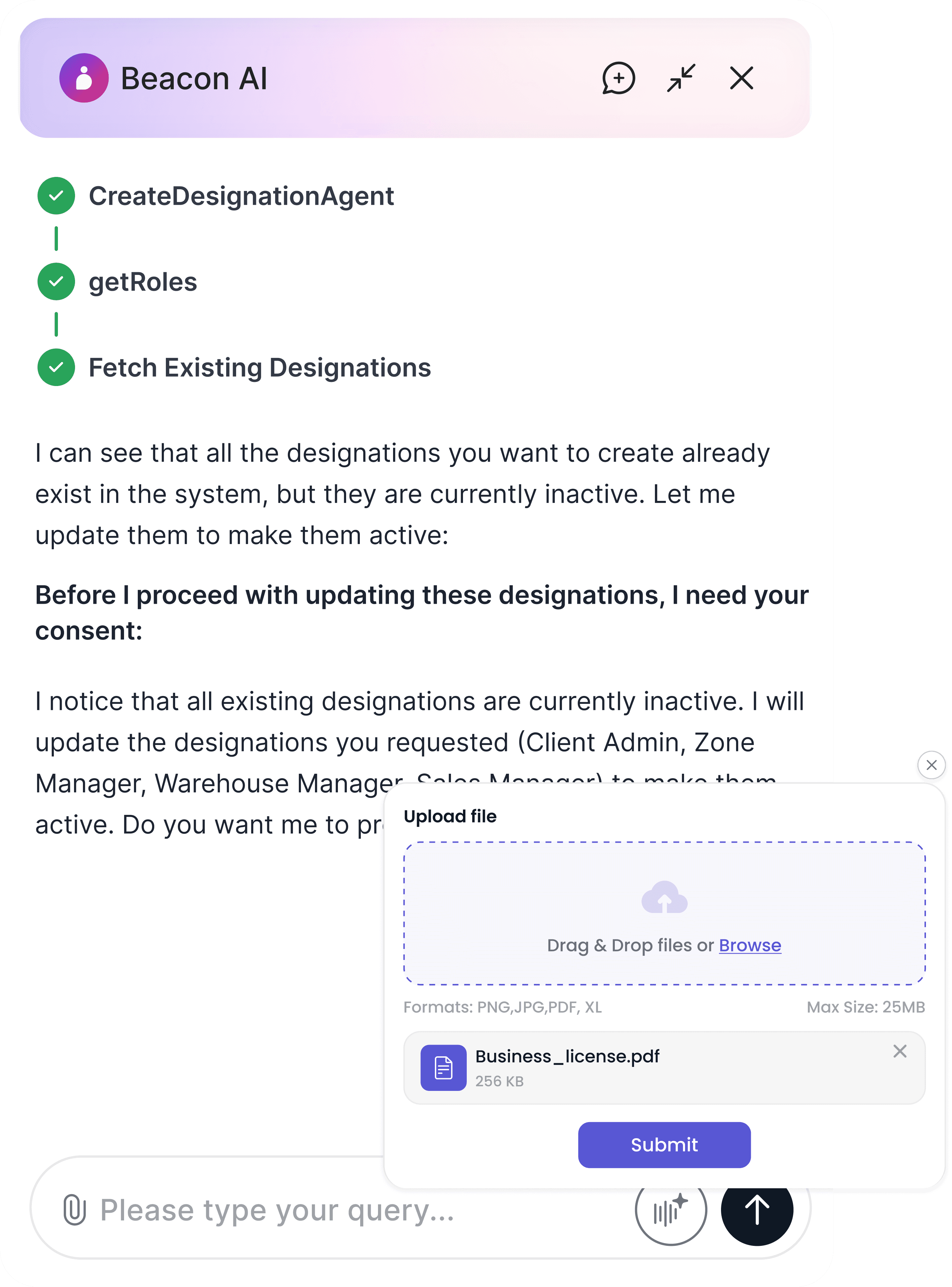 Beacon’s AI agents read and interpret client setup documents, extracting policies, configuration parameters, and workflow dependencies directly from sheets, PDFs, or structured inputs.